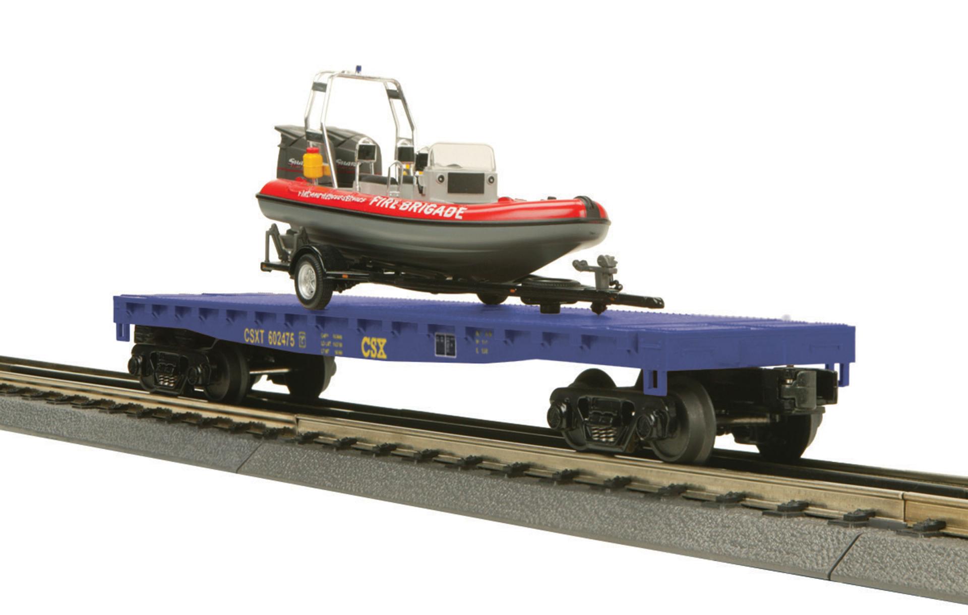 MTH RailKing CSX Flatcar w/ Fire Rescue Boat