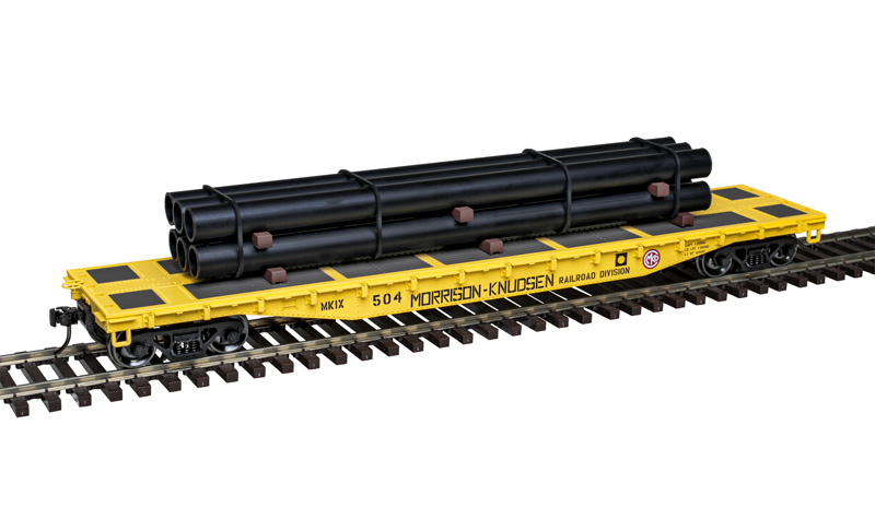 ATLAS 'Trainman' Morrison Knudsen 52'6" Flatcar w/ Pipe Load