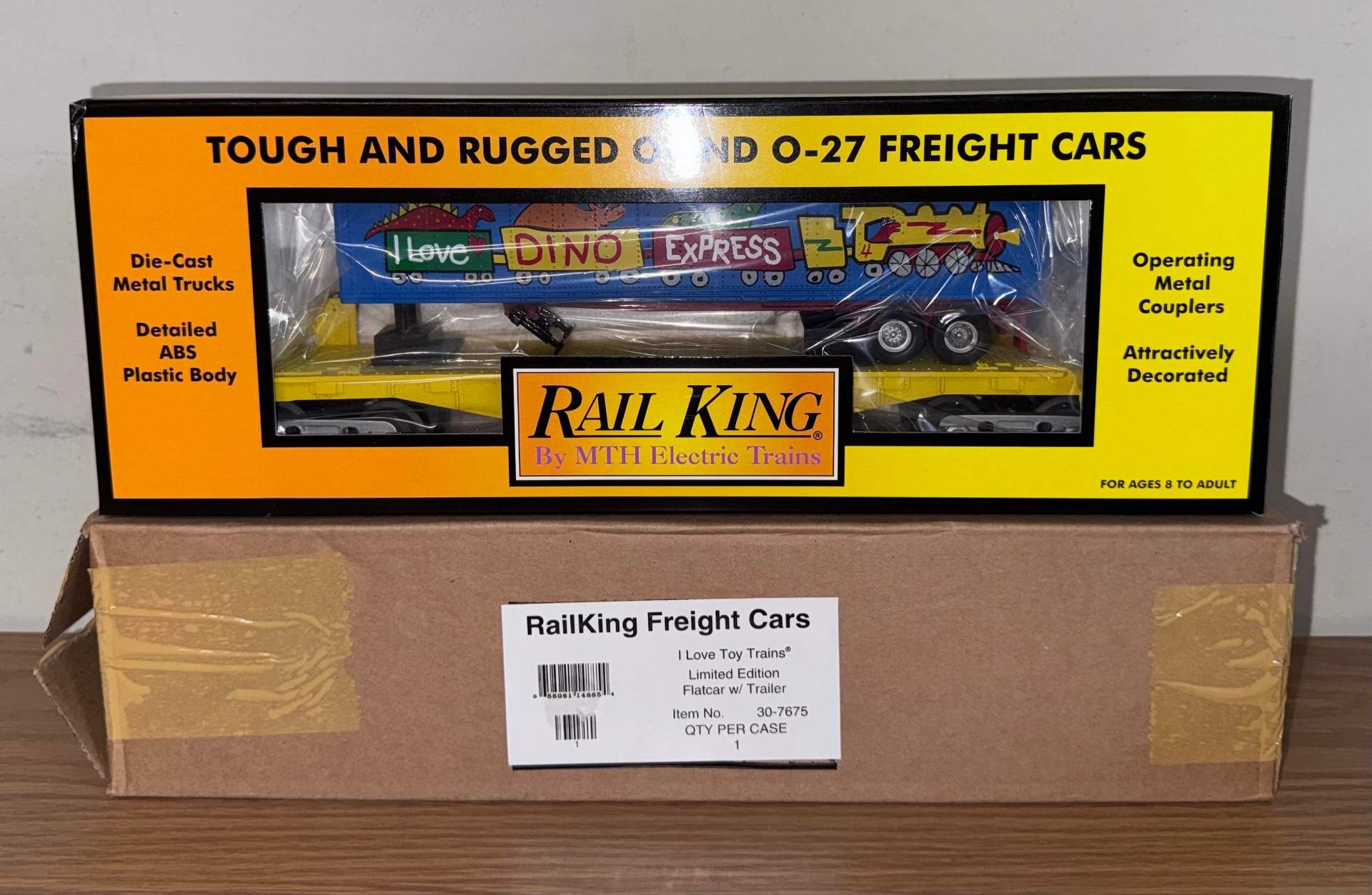 MTH RailKing 'I Love Toy Trains' Flatcar w/ Trailer